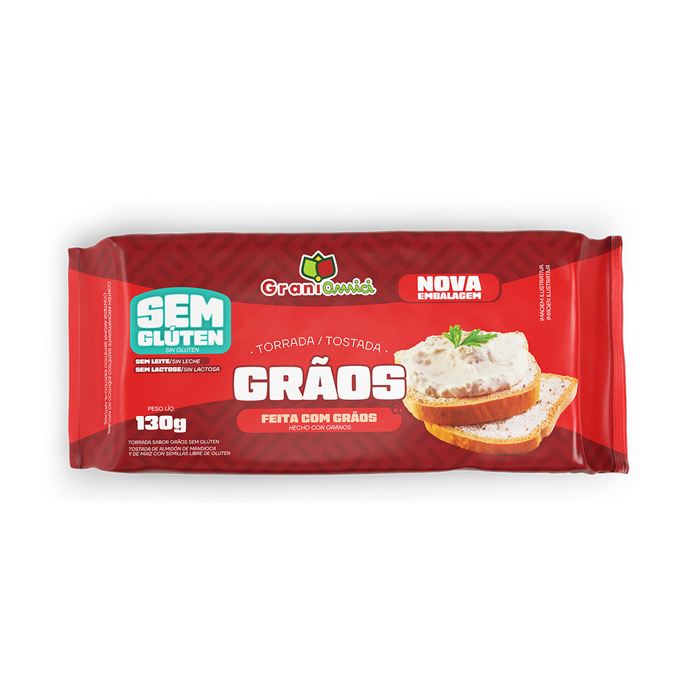Crocrância e nutrição em cada mordida! A Torrada Sem Glúten com Grãos da Grani Amici é rica em fibras, perfeita para acompanhar patês, geleias ou servir como base de canapés.