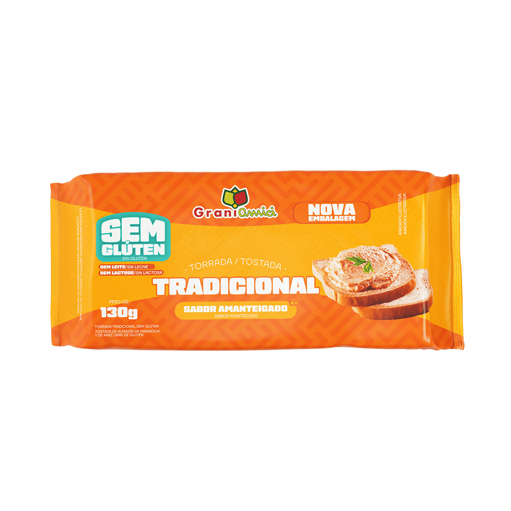 Clássica e versátil, a torrada sem glúten Grani Amici é leve, crocante e ideal para lanches rápidos ou acompanhamento de refeições. Uma excelente opção para quem possui restrições alimentares e não abre mão do sabor.